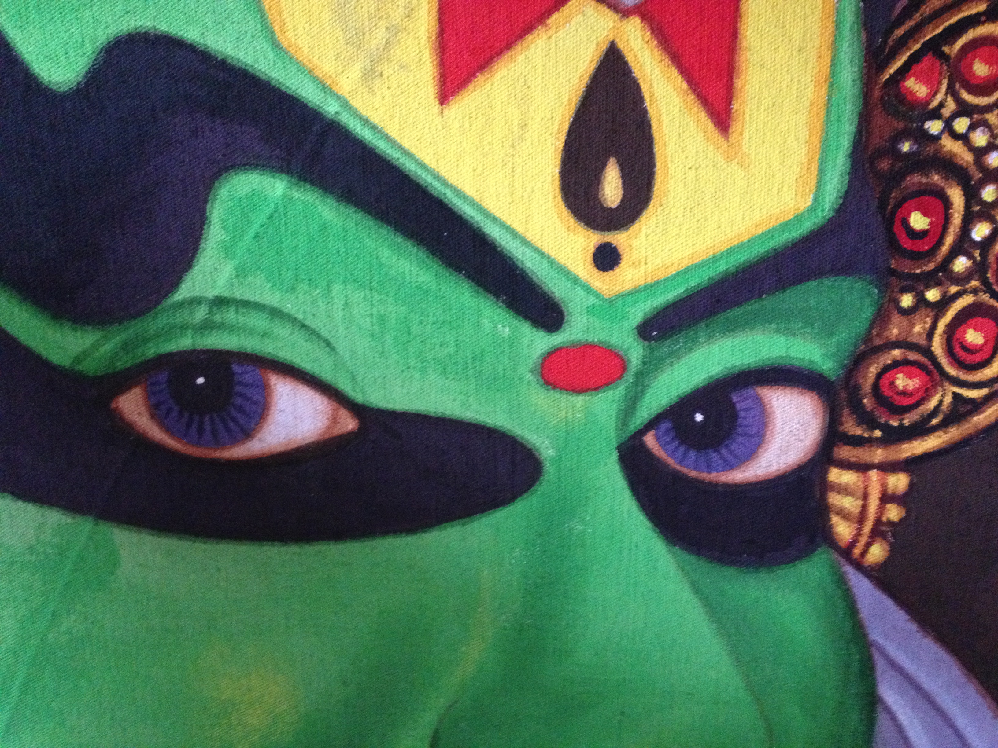 Opowieść przełożoną na „język” teatru Kathakali w XVIII wieku przez maharadżę Karthika Thirunala prezentować mogą jedynie aktorzy po wieloletnim i wymagającym olbrzymiego skupienia i ofiarności szkoleniu. Jak złożony jest ów język uświadamia wszystkim krótka prezentacja poprzedzająca spektakl. Aktor chwali się pozornie prostą zdolnością kontroli nad ruchami oczu. W rytm muzyki kręci gałkami ósemki, koła lub przerzuca spojrzenia pod przeróżnymi kątami. Jak trudne to uświadamiam sobie usiłując ze swojego miejsca naśladować go i dając sobie po parunastu sekundach spokój w obawie przed oczopląsem. Moje oczy w porównaniu z jego są niemowami wypowiadającymi zaledwie garstkę słów z wąskiej palety będącej w zasięgu dwuletniego berbecia. A miałem o swoim spojrzeniu wyższe mniemanie.