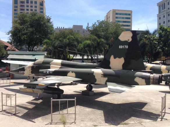 Plac pomiędzy wspomnianą ekspozycją a głównym, 3-piętrowym budynkiem muzealnym, pozwala na chwilę odwrócić uwagę od ciężkości unoszącego się tu powietrza. Rozstawione pod gołym niebem okazałe rekwizyty przyciągają zwiedzających pozujących często z uśmiechem na twarzy na tle amerykańskich samolotów, śmigłowców i samochodów wojskowych. Jest niemal rozrywkowo.