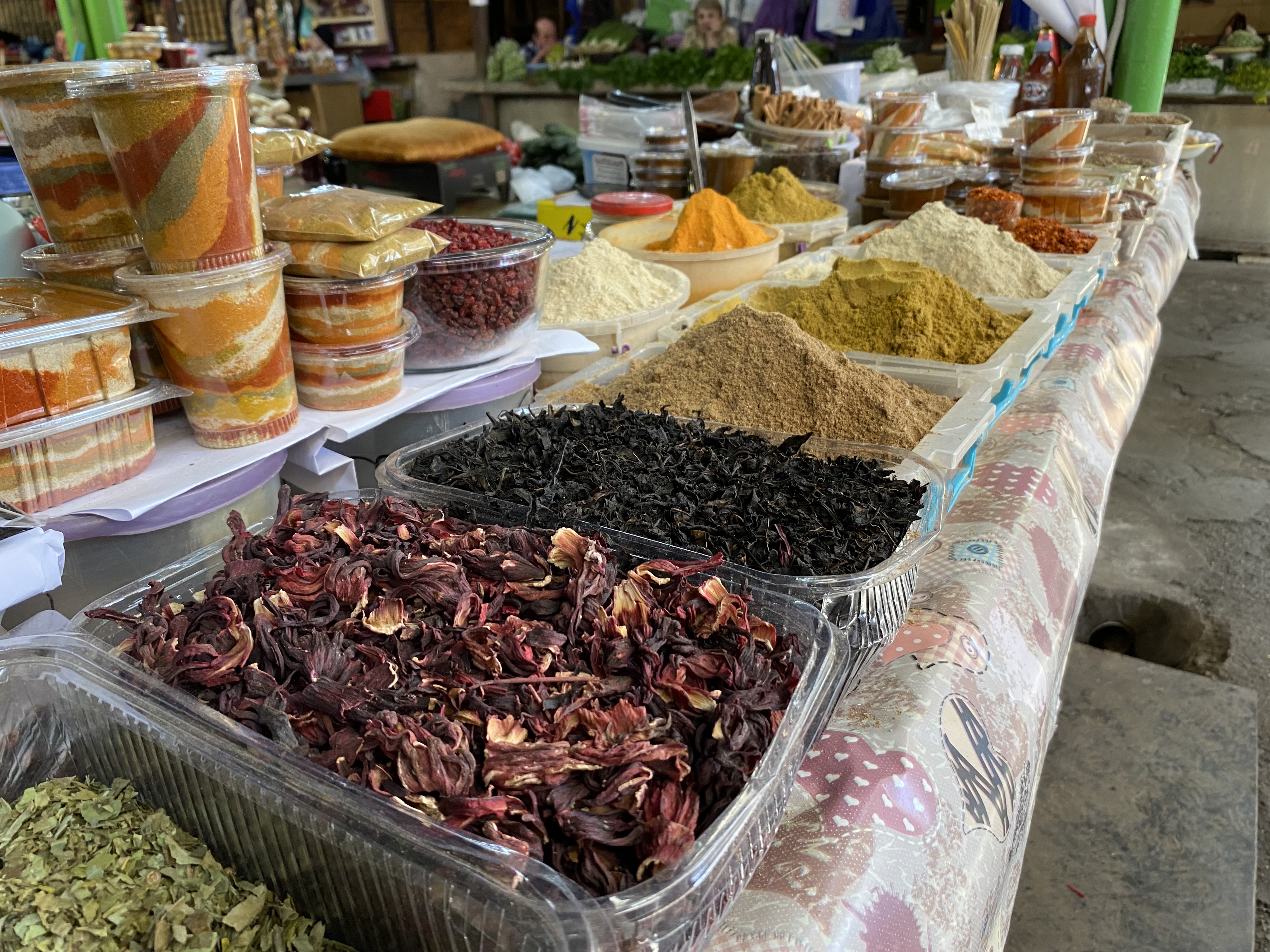 No i bazary. Kutaisi ma ich kilka. Pachną świeżymi wypiekami, stosami przypraw, czasami degustowaną czaczą, owocami oraz gruzińskimi snickersami, jak mówi się na zatopione w stężałych, owocowych syropach orzeszki przewleczone cienkim sznurkiem.