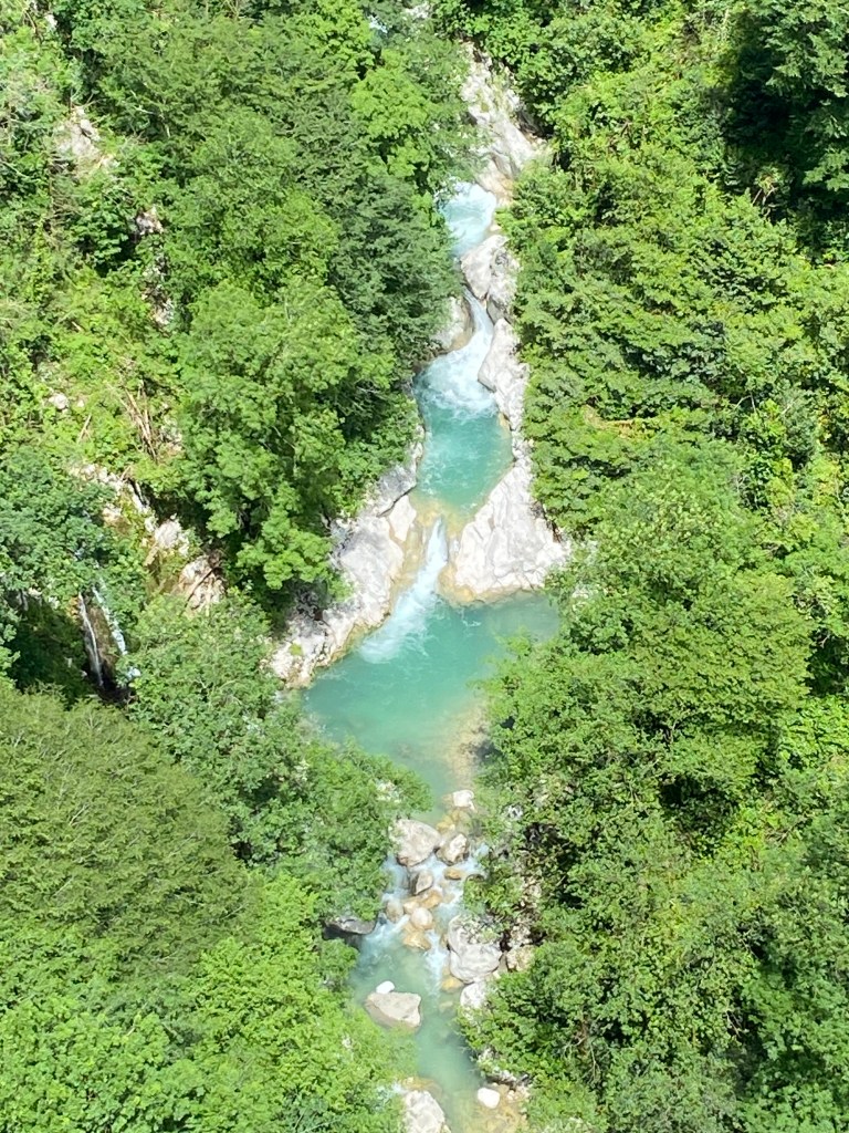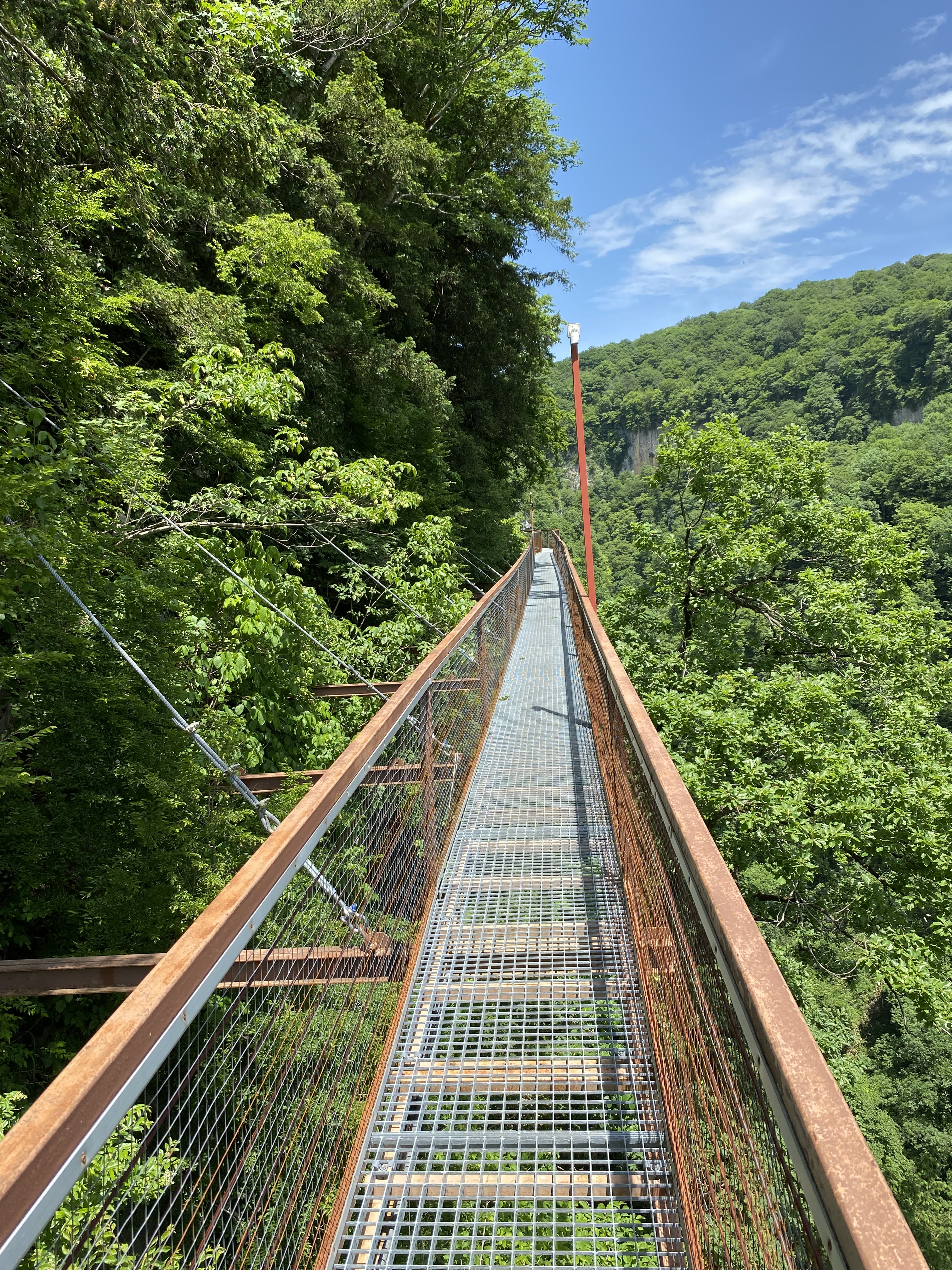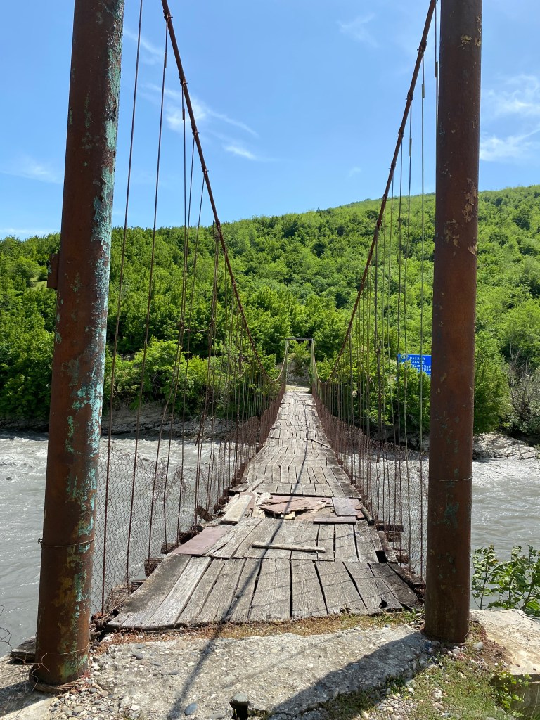 Spływem wśród skał, ale już nie jaskiniowych, kusi z kolei nie tak odległy Kanion Martvili. Krótki spacer i potem rejs pontonem są relaksującym, wyciszającym i bez wątpienia pięknym punktem tej wycieczki. Podobnie kanion Okatse wyrzeźbiony nurtem rzeki o tej samej nazwie. To 50 kilometrów od Kutaisi i 6 kilometrów pętli do przejścia. I lepiej pójść. Warto, mimo żarliwości kierowców terenowych busików namawiających do podwózki spod kas biletowych do samego kanionu – szkoda pieniędzy, bo oczekują solidnych kwot, z których niechętnie negocjują w dół – i szkoda okazji na spacer przez park leśny Dadiani. Ponad dnem samego kanionu przygotowana jest wczepiona w strome urwiska metalowa trasa z kratownic – mało zachęcające dla osób z lękiem przestrzeni i wysokości, którym zachęty „nie patrz w dół” mogą tu być nie wystarczać. Ale może uda się wytrzymać – w końcu to tylko niespełna 800-set metrów najbardziej eksponowanego odcinka trasy. Perspektywa podziwiania kanionu zupełnie inna niż z leniwie płynącego pontonu w Martvili.
