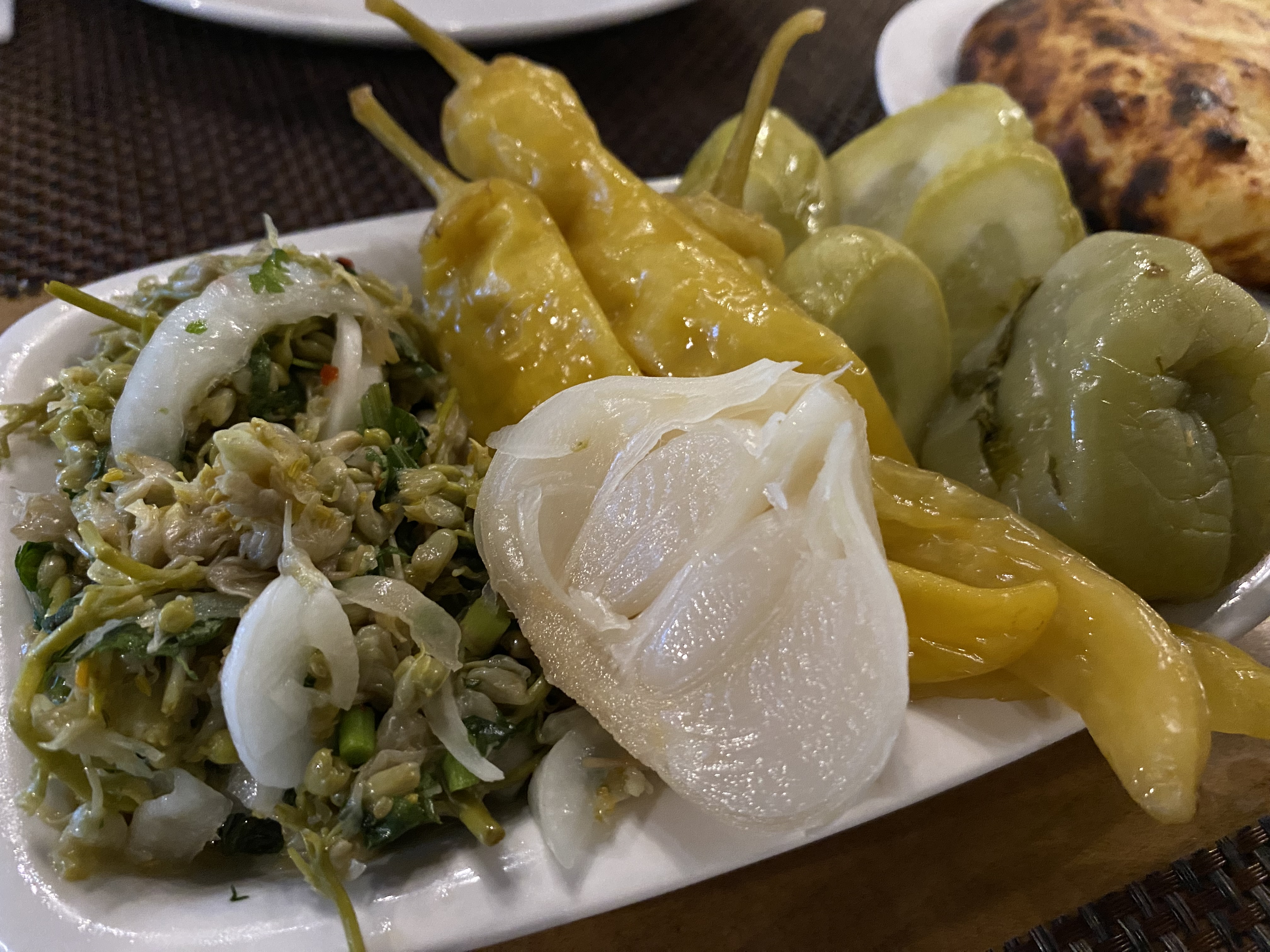 A propos degustacji. Bez zjedzenia choćby porcji chinkali pobyt w Gruzji się nie liczy. To akurat danie, którego nie trzeba w tym kraju długo szukać, ale w Kutaisi zachwyca w dwóch miejscach. Blisko serca miasta, niedaleko rzeki i pieszej kładki, chinkali – pierożki w różnych zestawach i z różnymi nadzieniami – są specjalnością El Depo. To miejsce wypełnione niemal nieustannie lokalnymi biesiadnikami i zdecydowanie nie rujnujące ani podniebienia, ani portfela. Nie tylko dla chinkali, także dla genialnych pikli i dań z grilla warto też wybrać się za miasto do Kvamli, w którym nadzianie się przy okazji na imprezę weselną, urodzinową czy rocznicową, roztańczoną, z muzyką na żywo i chóralnymi śpiewami, wcale nie jest rzadkością.