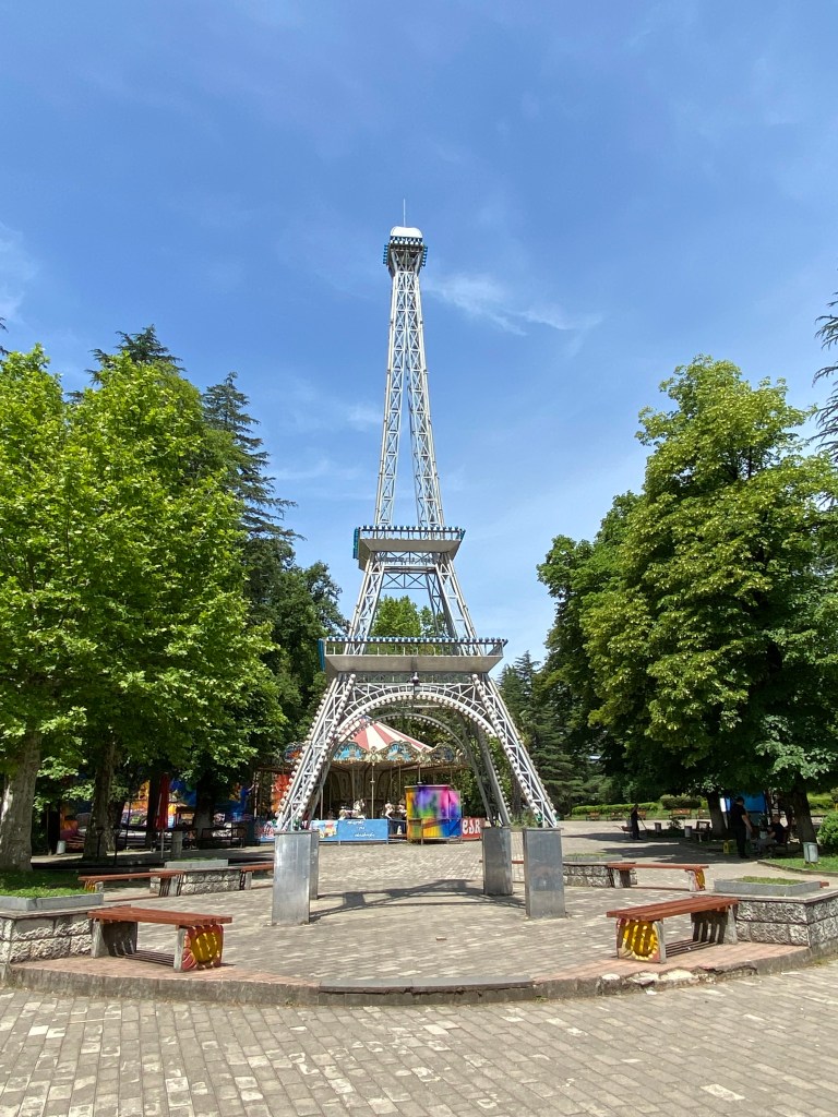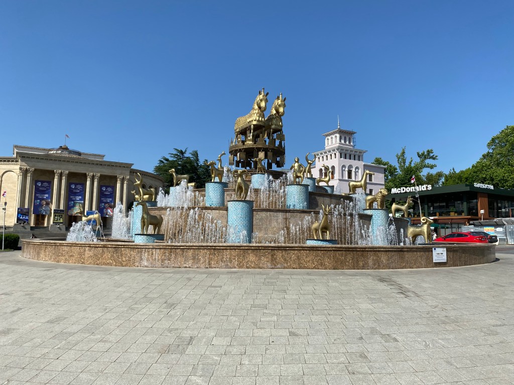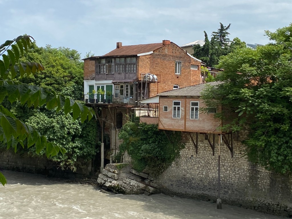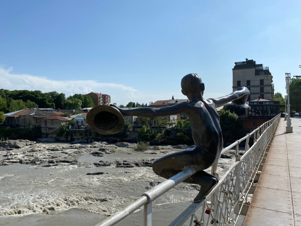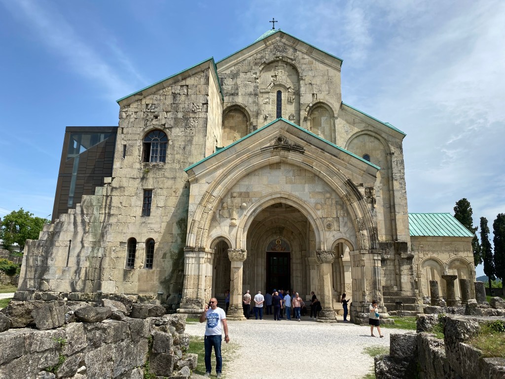 Pocztówki z Kutaisi nie pozostawiają cienia wątpliwości, co traktowane jest tu za atrakcję. Fontanna Colchis na Placu Centralnym ocieka nie tylko wodą, ale i złotem, którym pokryte są liczne figurki zwierząt – jeleni, koni, tygrysów czy baranów. A pomiędzy nimi siedzi tamada – gruziński mistrz ceremonii podczas tradycyjnej supry – który trzymając pełen wina róg wita przybywających gości. Górująca nad miastem i wieńcząca wzgórze Ukimerioni katedra Bagrati jest kolejną wizytówką miasta, jest nią odkąd powstała w XI wieku. Budowla imponuje, ale zaskakująco straciła miejsce na liście dziedzictwa UNESCO po tym, jak przeprowadzono w niej renowacje zbyt wykraczająca poza zalecenia i wkraczającą w autentyczność oryginalnej konstrukcji. Tego problemu nie ma młodszy o sto lat, ale nie mniej imponujący monastyr Gelati z pobliskiej miejscowości Imeretia, z pięknym widokiem na Kaukaz i średniowiecznymi, dobrze zachowanymi do dziś, freskami. Jednak poza tymi pocztówkowymi liderami Kutaisi nie przestaje intrygować. Spacer wzdłuż często wzburzonej rzeki Roni prowadzi do dzielnicy, w której domy rozpaczliwie opierają się niszczącym żywiołom i prawom fizyki i wiszą nad kipielą wspierane metalowymi podporami. A nad rzeką kursuje kolej linowa, której wąskie wagoniki zapewniają społeczną integrację w drodze na szczyt wzgórza, którego atrakcją jest … wieża Eiffela, w tandetnej, ale uroczej miniaturze zdobiącej tutejszy mały lunapark. No i uliczki, wąskie, kręte, brukowane, pełne kamieniczek, którym dodatkowe zmarszczki czasu dodają uroku, choć szkodzą strukturalnie.